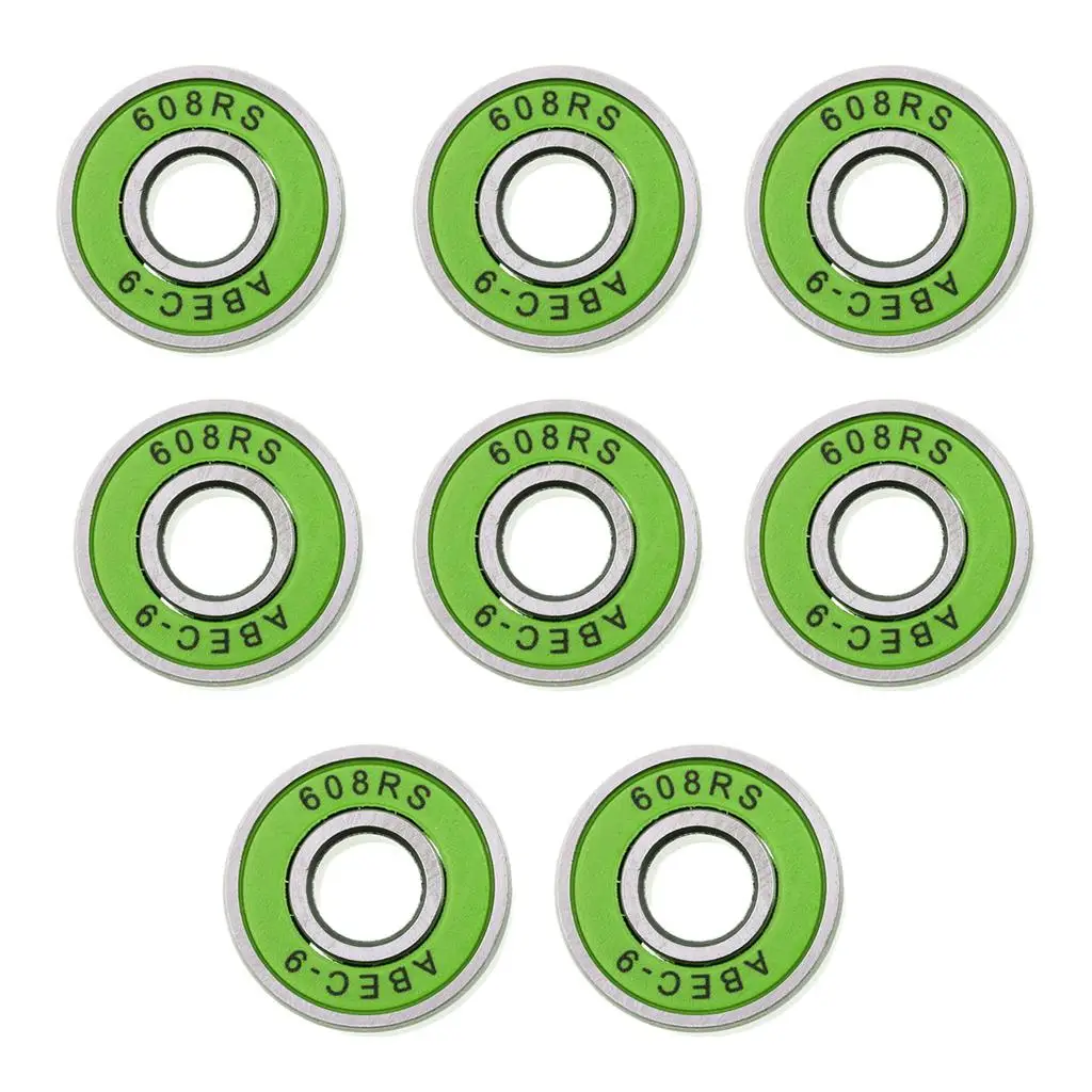 Built with precision ABEC-9 rating, these bearings provide excellent speed, low friction, and consistent rolling for both beginners and experienced riders. The 608RS sealed design helps protect against dust, dirt, and moisture, extending the life of the bearings and reducing maintenance.